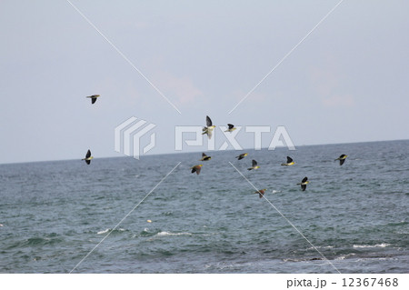 海水を飲みに来るアオバトの群れ(大磯町照ヶ崎海岸)
