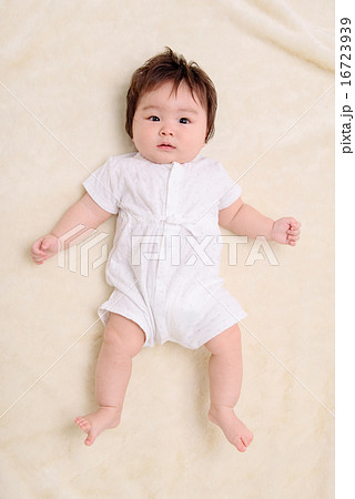 赤ちゃん 裸 オムツ 男の子 乳児 仰向け 寝転がる