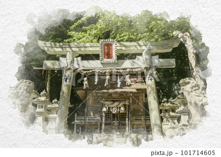 水彩画風 赤猪岩神社 鳥居 鳥取県南部町
