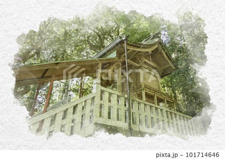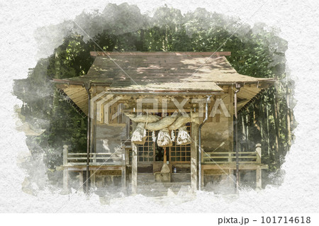 水彩画風 赤猪岩神社 本殿 鳥取県南部町