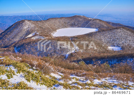 冬の群馬県赤城山 地蔵岳山頂から南東側の小沼方面を見る