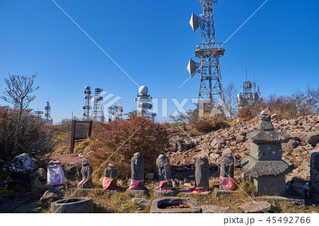 秋の赤城山 地蔵岳山頂のアンテナ群とお地蔵様