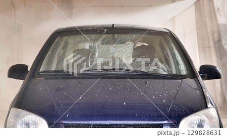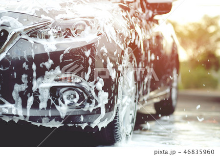 Cars in a carwash. Car wash with foam in car wash station. Carwash. Washing machine at the station. Car washing concept. Car detailing