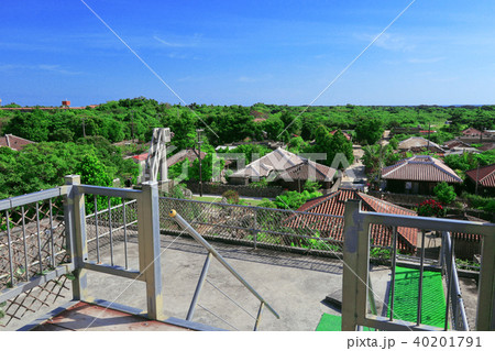 沖縄 竹富島 あかやま展望台からの眺め まちなみを行く水牛車