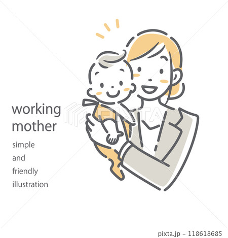 働くお母さんと赤ちゃん シンプルでお洒落な線画イラスト