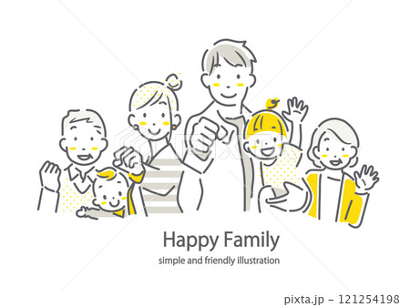 笑顔の三世代家族 シンプルでお洒落な線画イラスト