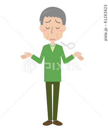 高齢 中高年 男性 全身 溜息 落ち込む 表情 ポーズ お手上げ あきらめる