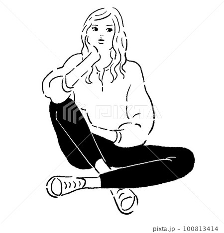 あぐらをかいて座る女性のイラスト素材 斜め上からのアングル