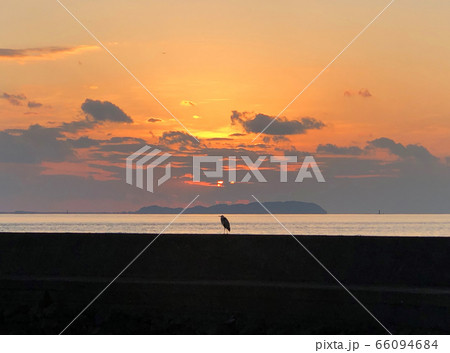 日没と海鳥 長崎県南島原市口之津町早崎地区田尻浜漁港