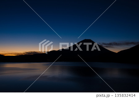 山梨県 本栖湖 黎明の富士山