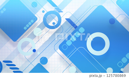 角丸四角形とシンプルな図形が並ぶポップでスタイリッシュな平面構成 - ブルー