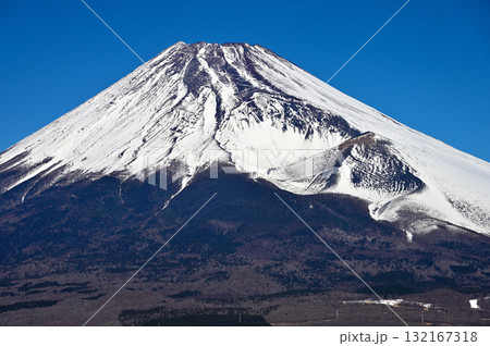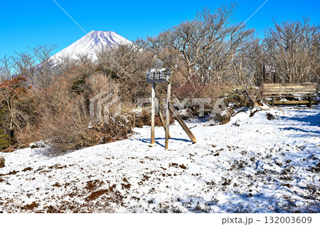愛鷹連峰の越前岳の平坦地より望む 雪化粧の富士山と宝永火口