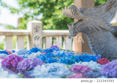 紫陽花のある手水舎