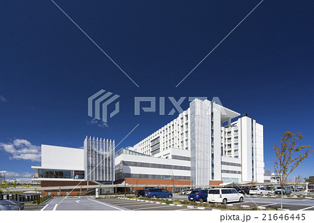仙台市立病院の晴天の青空に映える白い特徴的な外壁外観東日本大震災後に完成竣工