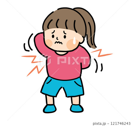 背中がかゆくて困っている子供のイラスト