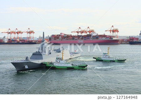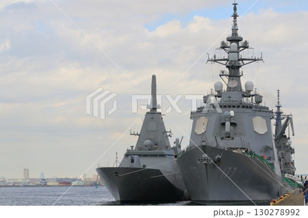 神奈川県横浜市 横浜みなとみらいと停泊している軍艦