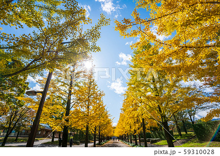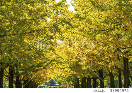 秋のあづま総合運動公園のいちょう並木 福島県福島市
