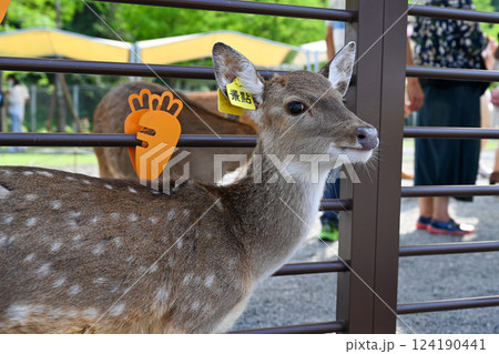 可愛小鹿悠閒佇立 .動物園中的寧靜時刻