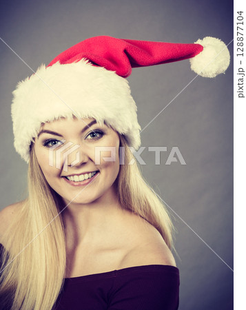 Studio photo portrait of a young pretty blonde on a dark background, close-up portrait of a woman