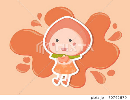 橘色跟粉紅色水蜜桃女孩吉祥物卡通插畫跟橘色跟粉紅色的噴濺水