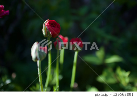 ラナンキュラスの開花、「晴れやかな魅力」の花言葉。赤色は「あなたは魅力に満ちている」の花言葉も。
