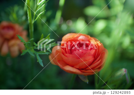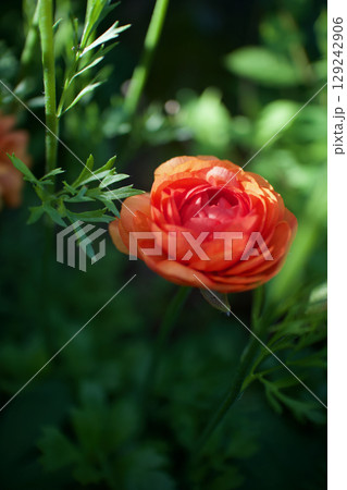 ラナンキュラスの開花、「晴れやかな魅力」の花言葉。オレンジ色は「秘密主義」の花言葉も。