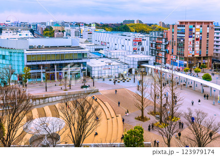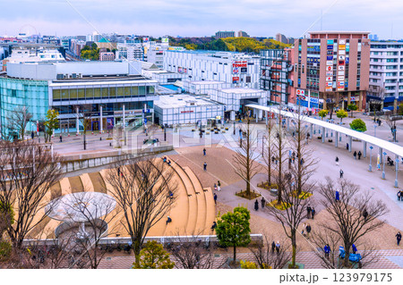 日本の横浜都市景観 地下鉄 「センター南駅」前などを望む