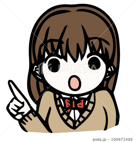 【塗り絵】注意点を指し示す女子高生2【線画】
