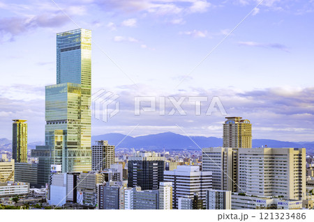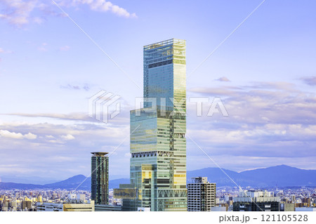 夕暮れの大阪ミナミ あべのハルカス近鉄本店とキューズモール
