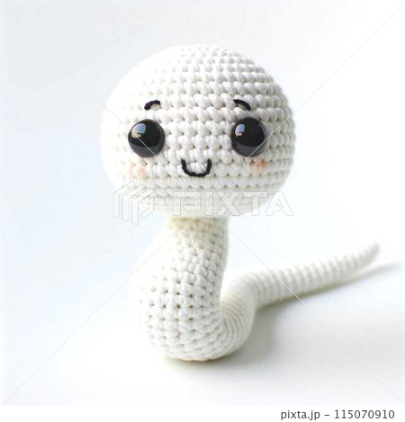 025年 年賀状用 干支の巳 あみぐるみ画像 - かわいい手作り白蛇のキャラクター 縁起物