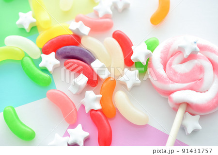 カラフルな背景とお菓子