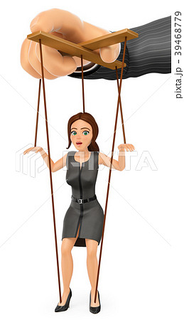 3D Business woman being handled like marionette