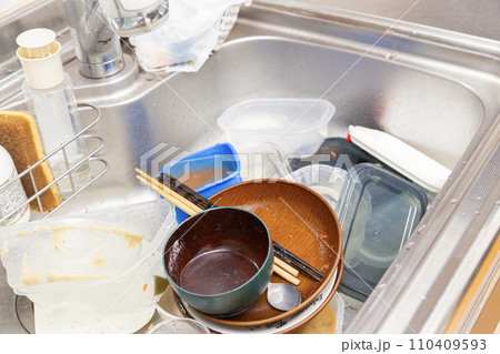 汚れ物が溜まったシンク
