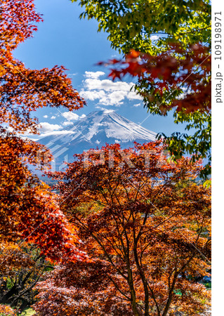 新倉山浅間公園 雄大な富士山と桜の紅葉 秋