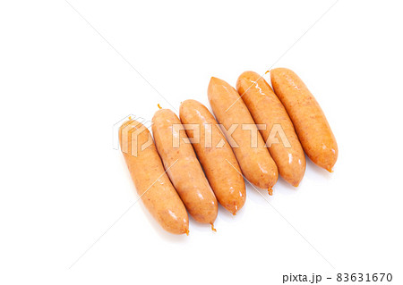 調理前の粗挽きウインナーソーセージ、ポーク【白背景】