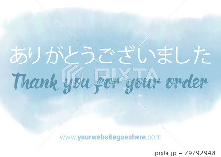 Japanese Language Printable Thank You card. Light blue Hand Drawn Watercolor note for business. Simple business card