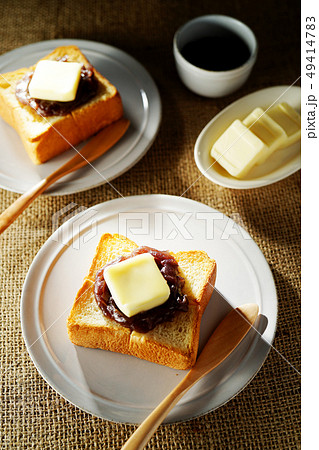 あんバタートースト 小倉トースト 軽食 バターとあずきをのせた食パン イメージ素材