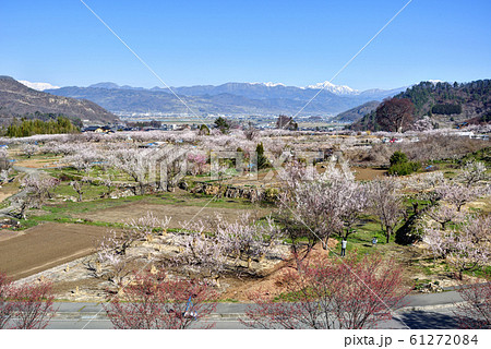 長野県千曲市 満開のあんずの里