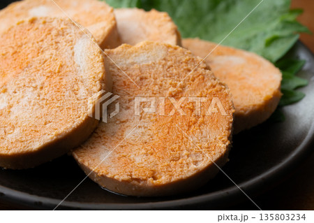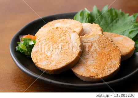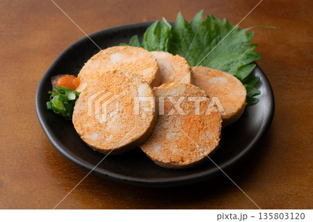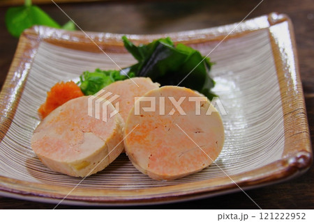 海のホアグラと呼ばれる鮟鱇の肝のポン酢あえの写真