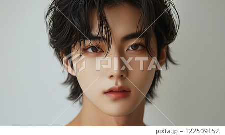 Perfect young female model woman with long healthy dark brown hair, shiny fresh skin.