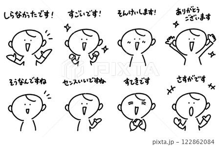 褒め言葉を言う男性のセット すごいです・さすがです・尊敬します
