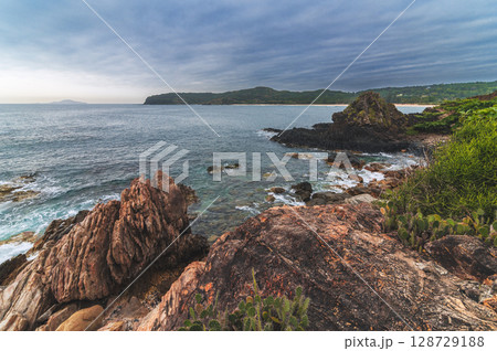 Landscape with rocks and stones by the sea. Da Da reef or Ganh Da Dia in Phu Yen province in Vietnam
