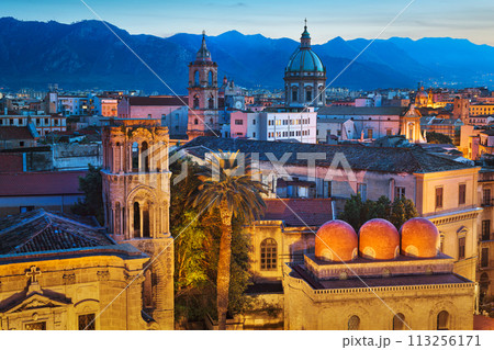 Palermo, Italy rooftop skyline view with the Church of San Cataldo