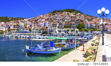 Unknown traditional Greece - beautiful Lesvos (Lesbos) island . Plomarion village with fishing boats