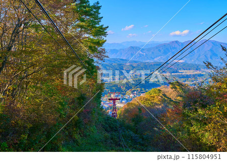 秋の群馬県渋川市伊香保町の伊香保ロープウェイから南側の伊香保 上ノ山公園(見晴駅)方面を見る