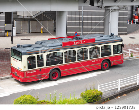日本の横浜都市景観 横浜市営バス・桜木町駅前市役所口から、あかいくつ、横浜市役所などを望む