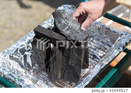 バーベキューの炭をおこす