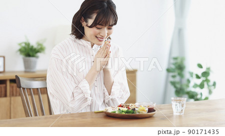 食事するミドル女性(料理・朝食・自炊・和食・健康)
