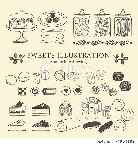 いろいろなお菓子の線描きイラスト/素朴なタッチ/クリーム
