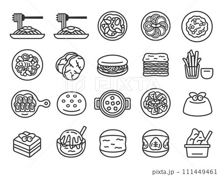 イタリアン料理のアイコン(線画カラー)のイラストセット